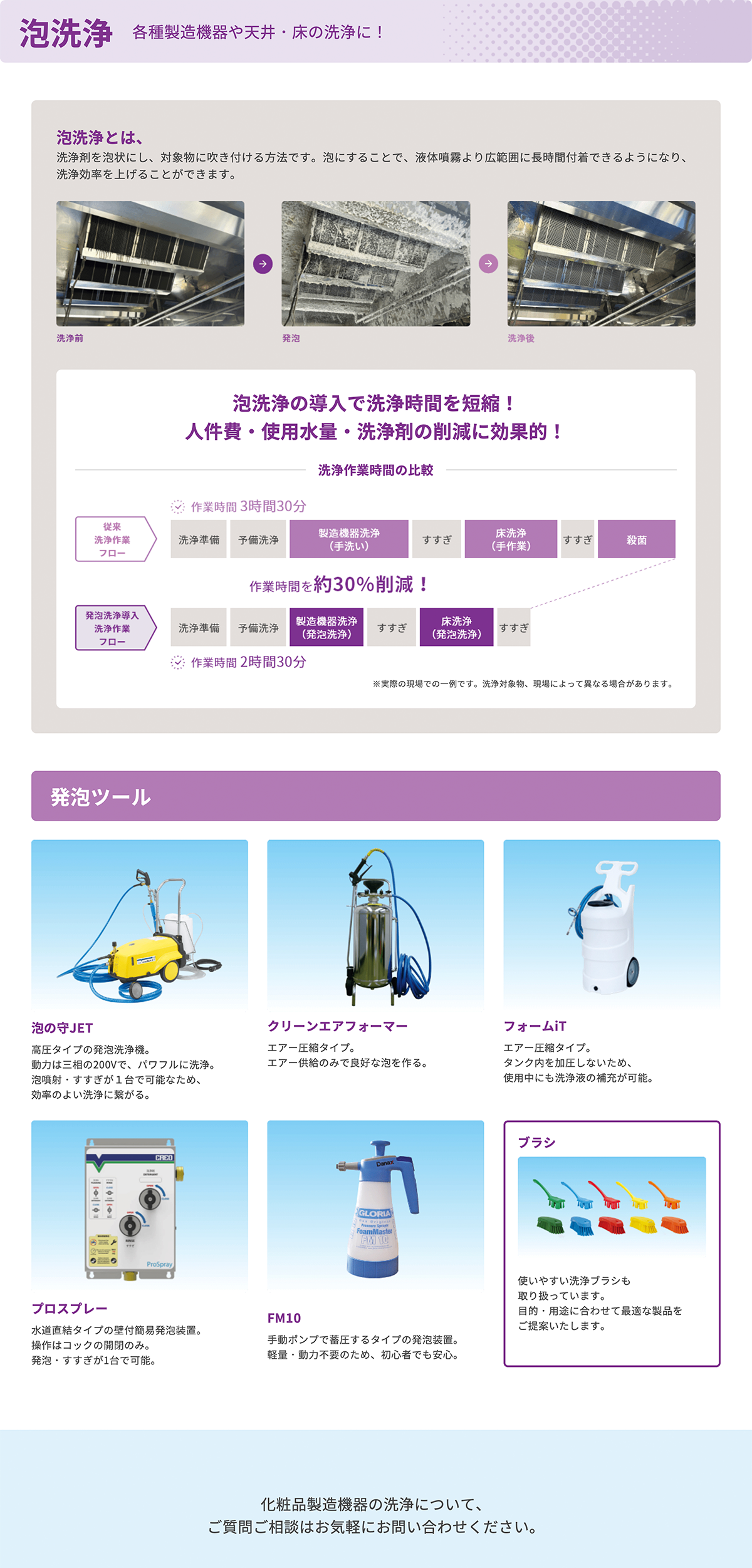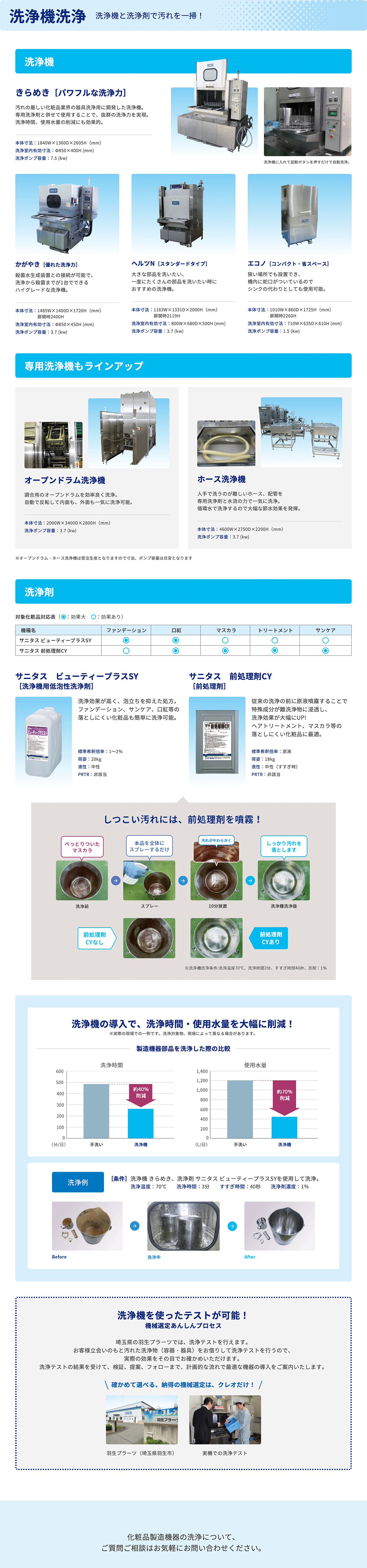 洗浄の「効率化」「省人化」「節水」おまかせください!