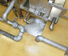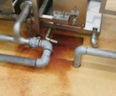 垂直面・複雑な形状にもしっかり付着するため、洗浄機内、生産機器(炊飯ライン、コンベア、ボイル槽、スライサー)、加熱機器のフード、床・排水溝、壁など、様々なところで活躍します。
