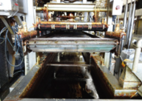 垂直面・複雑な形状にもしっかり付着するため、洗浄機内、生産機器(炊飯ライン、コンベア、ボイル槽、スライサー)、加熱機器のフード、床・排水溝、壁など、様々なところで活躍します。