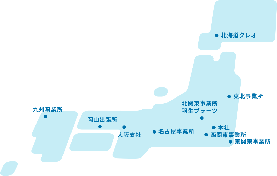 全国10か所 に拠点を構え、お客様の美感・衛生・環境のサポートを約半世紀にわたり行っています。